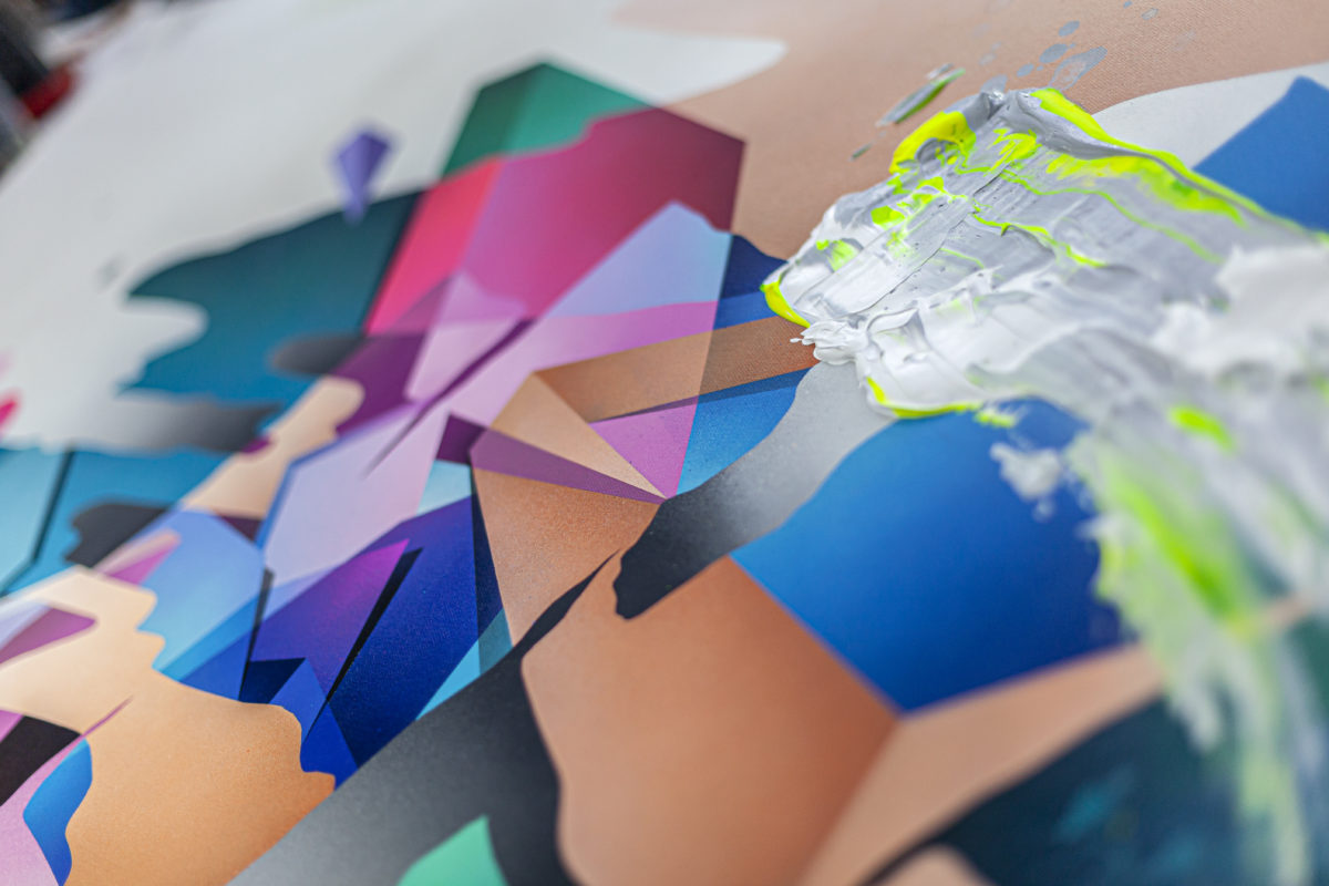 Akryl og spray maling på lærred
