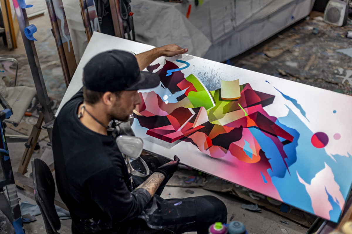 Spray maling på lærred