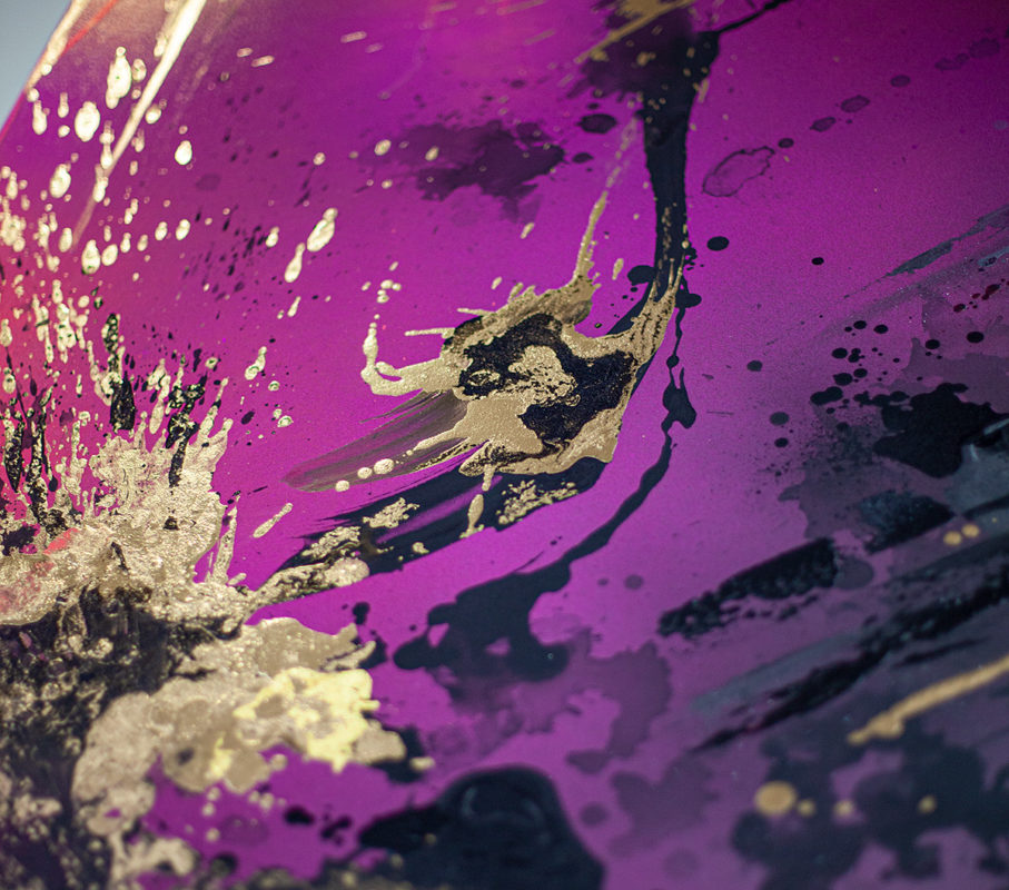 Akryl, spray maling, diamant støv, jern oxid og 24 karat guld på lærred
