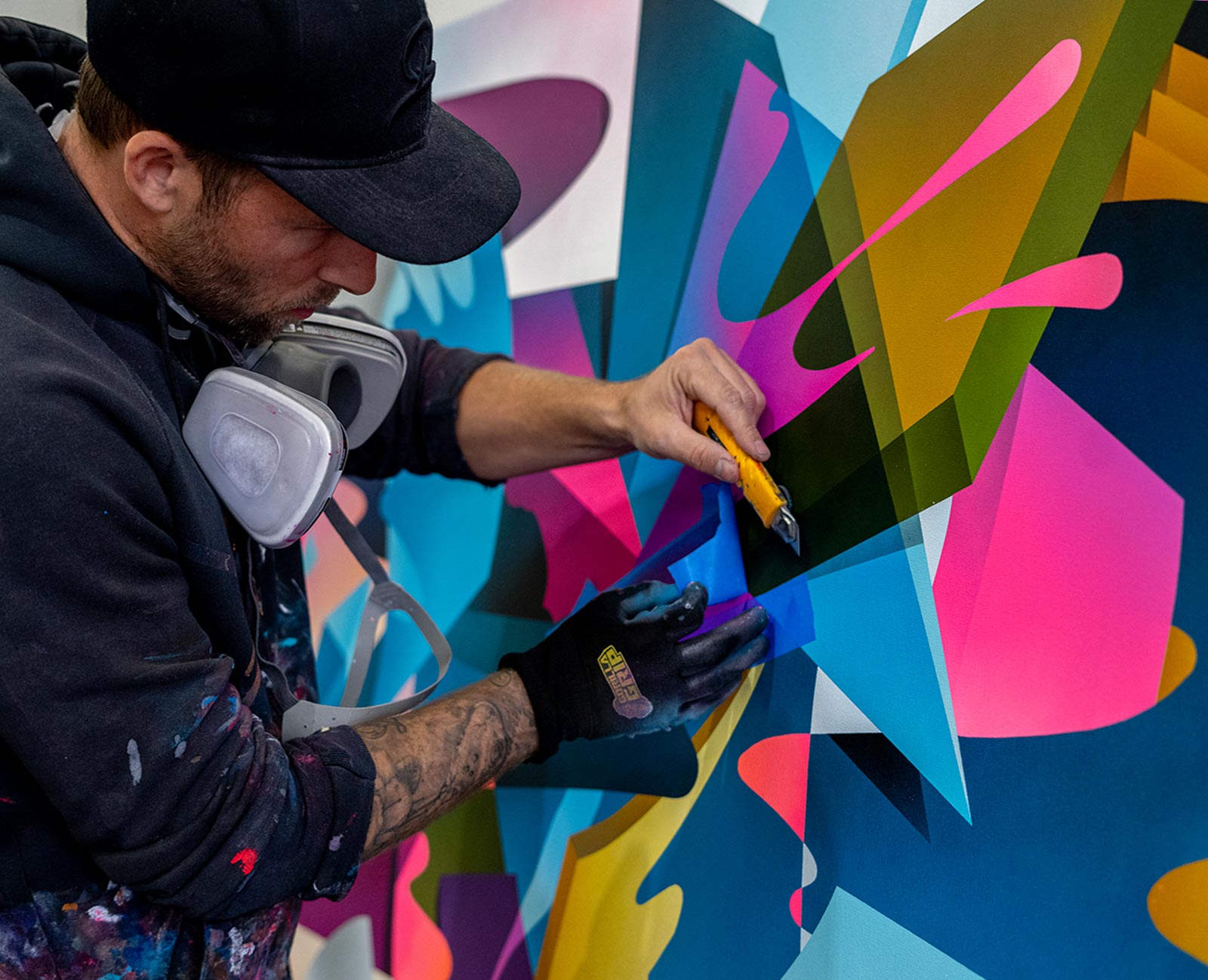 Udforsk levende, storslåede installationer baseret på Mikael B’s originale malerier.