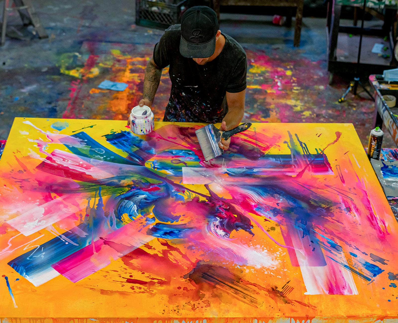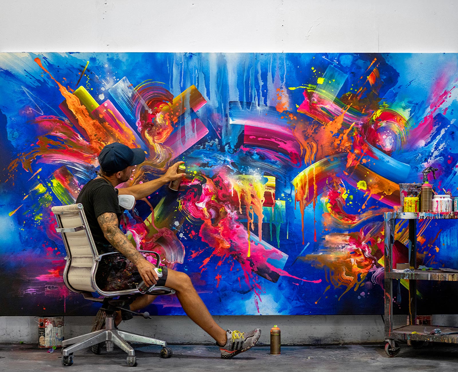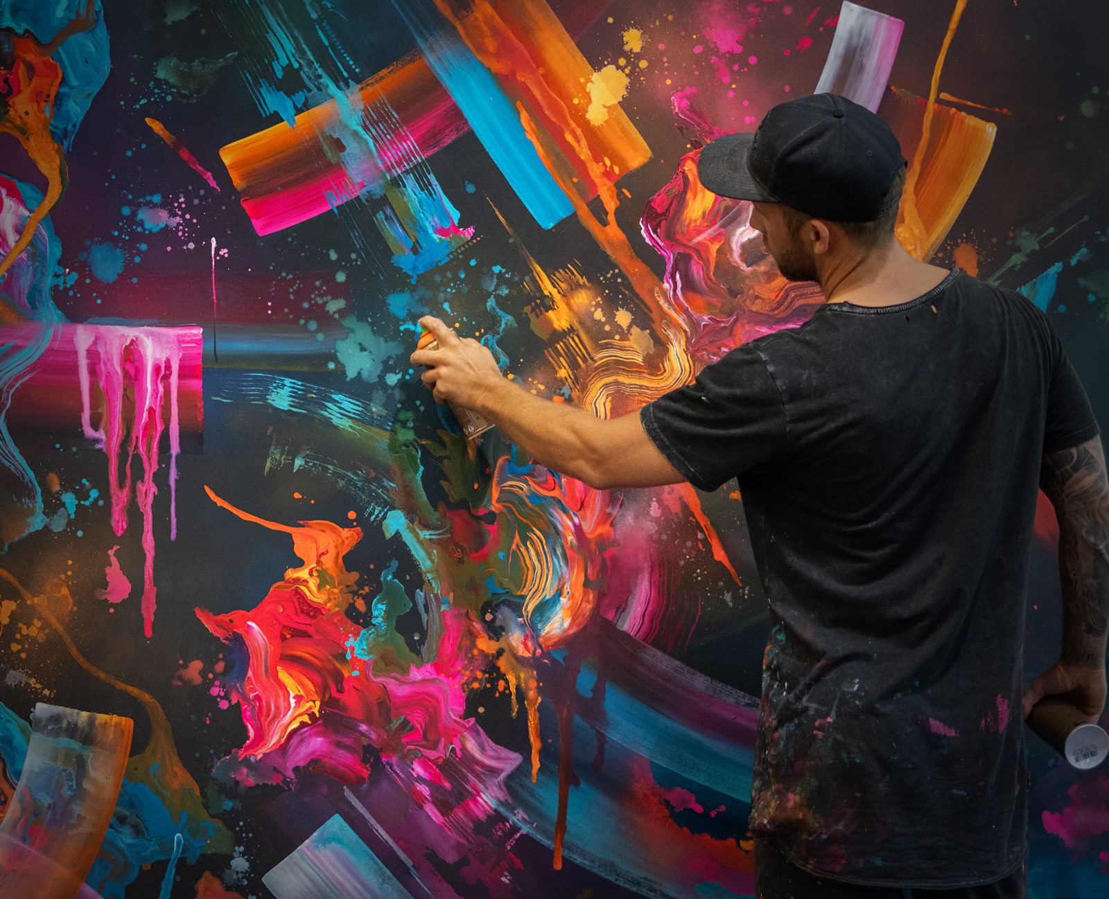 Dette er det mest ambitiøse projekt, jeg nogensinde har skabt. Det er ikke bare en samling værker eller en udstilling. Det er en verden med rødder i mine malerier, bragt til live på måder, jeg ikke kunne forestille mig før nu. Hvert rum er bygget på DNA’et fra mit visuelle sprog. Hver immersive oplevelse er en forlængelse af de bevægelser, lag og beslutninger, der sker på lærredet — men skaleret op, forstørret og omsat til en fysisk oplevelse.