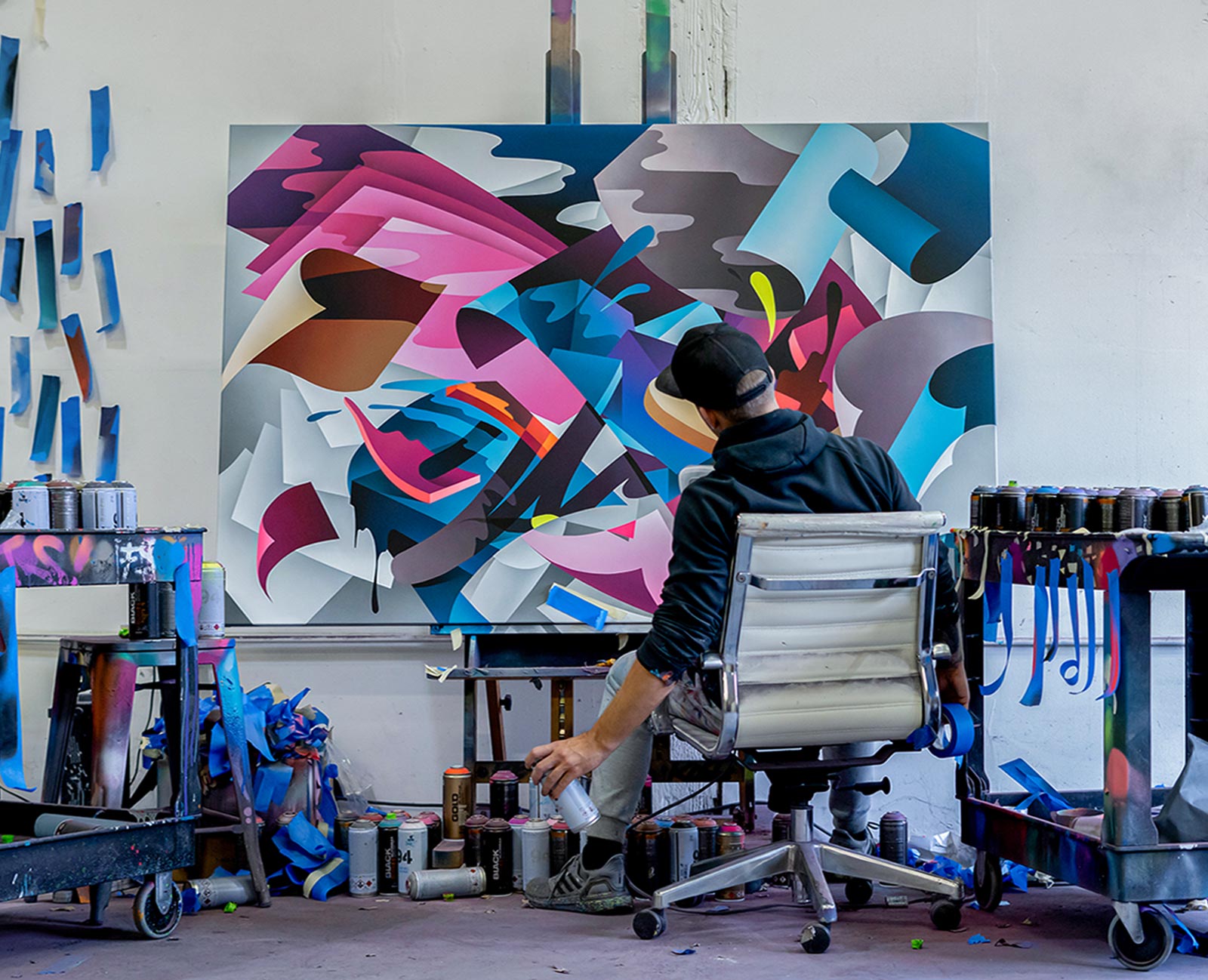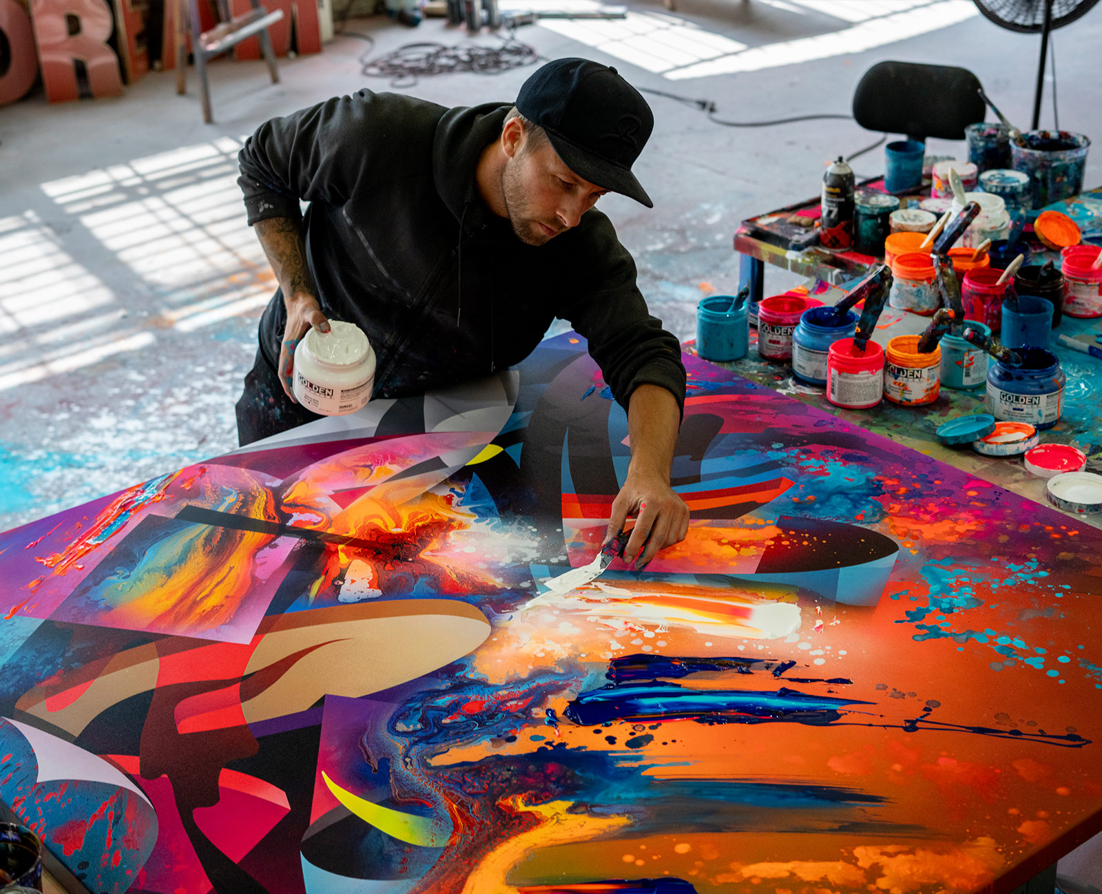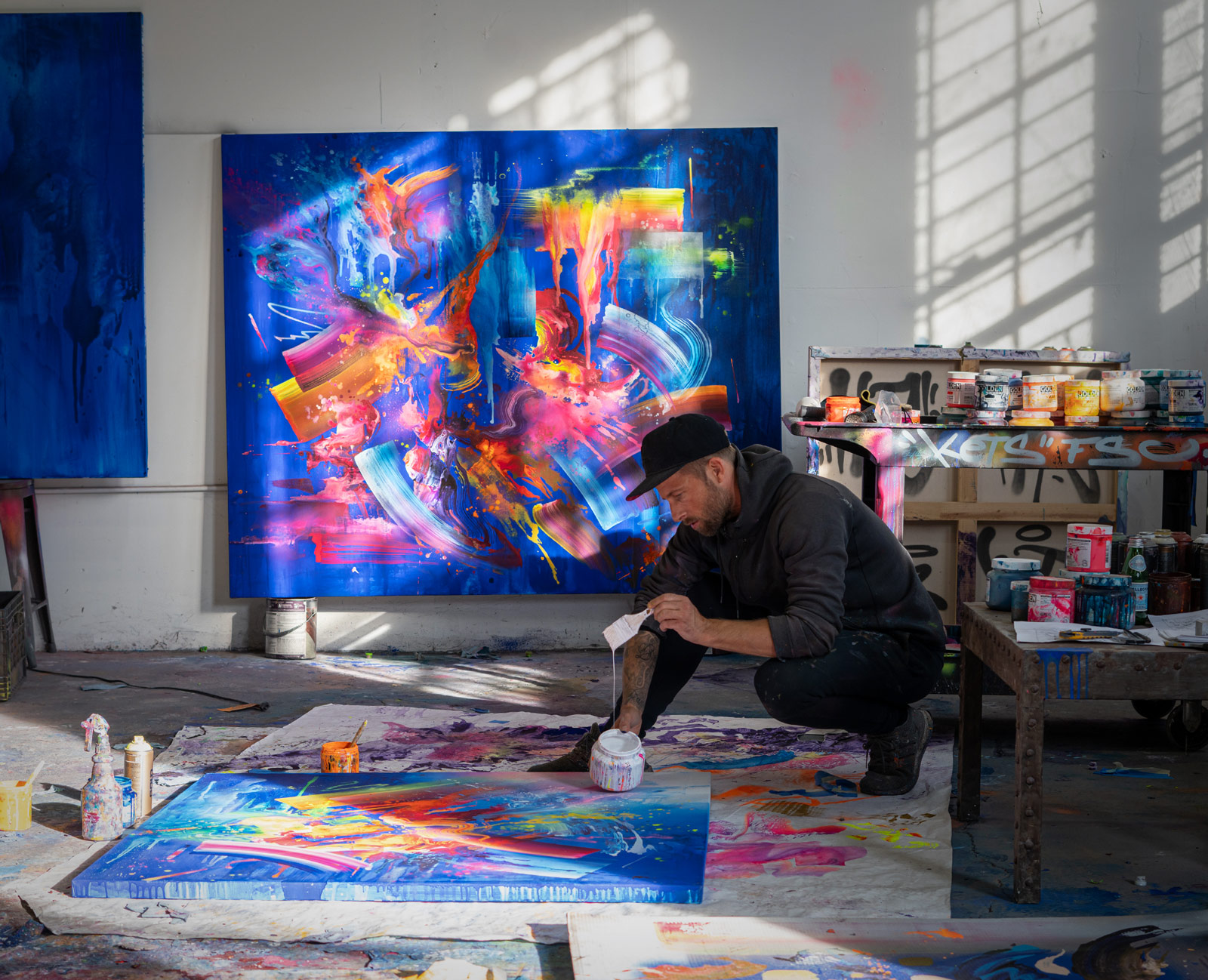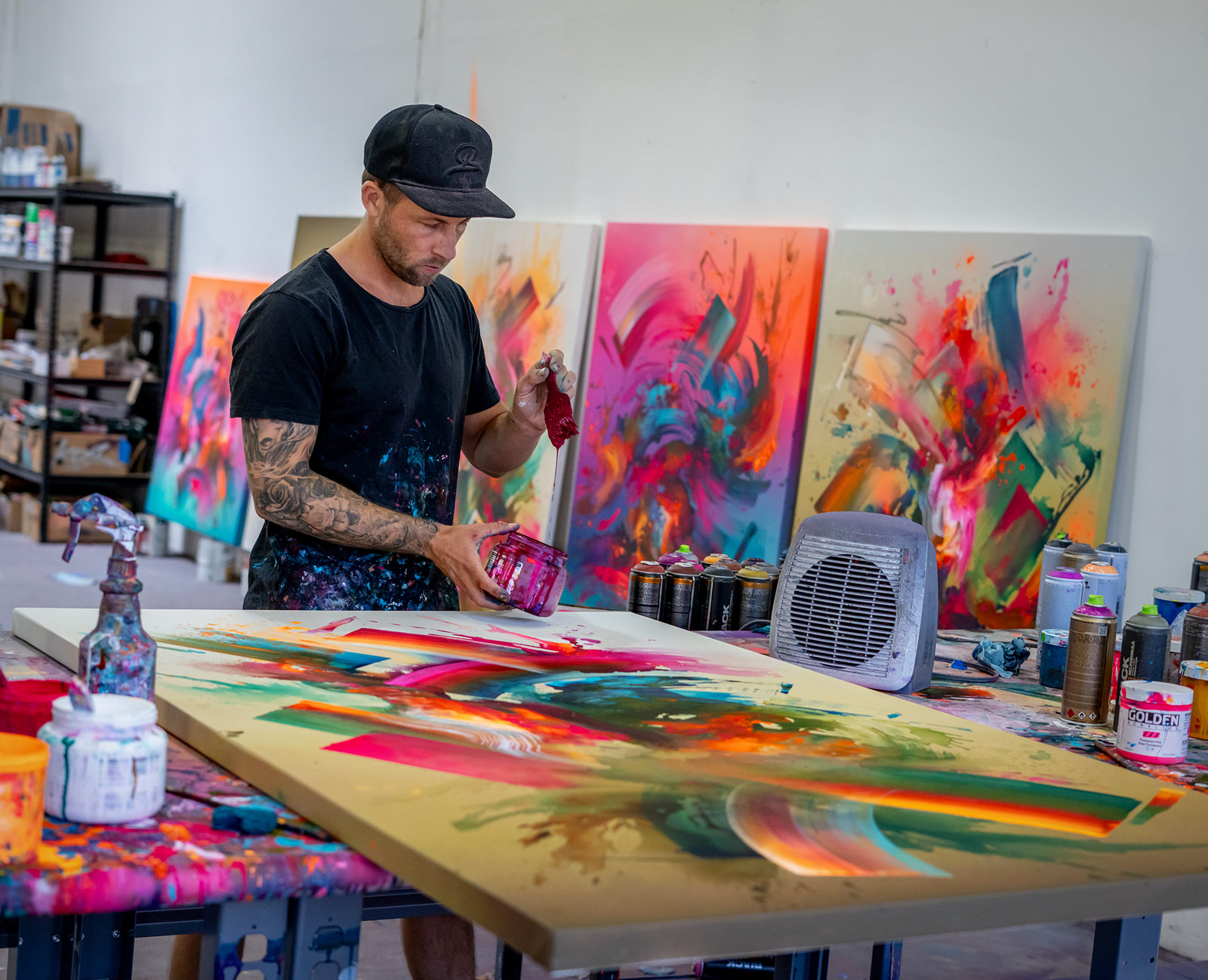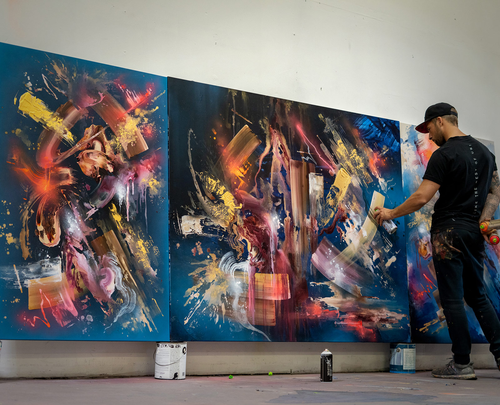 Oplev en serie af nye originale malerier skabt i Mikaels studie i LA.