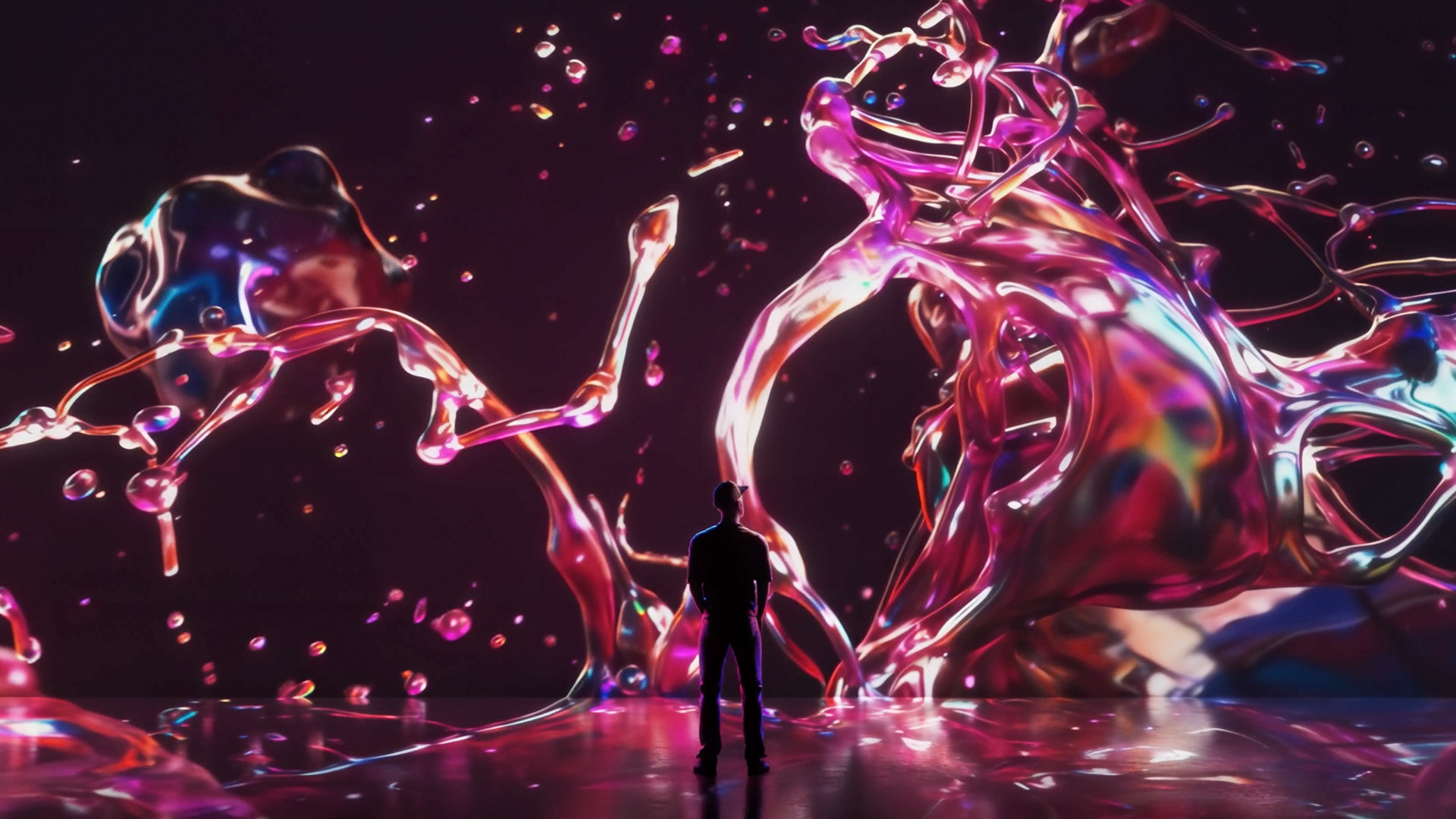 Forestil dig at stå midt i et maleri, mens det bliver til, farver og penselstrøg bevæger sig i kæmpe skala, projekteret fra gulv til loft.