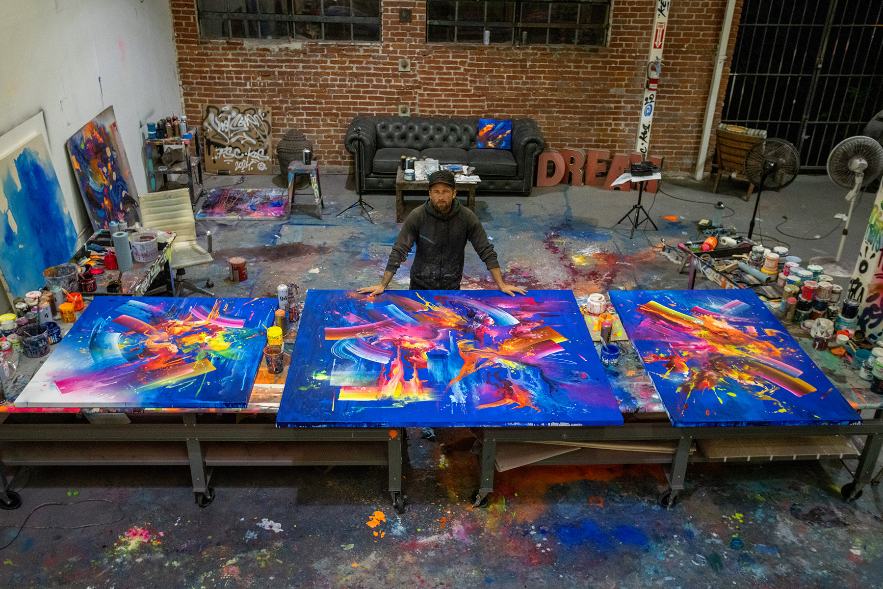 Mikael B. skaber værker, der taler direkte til beskueren – det er kunst, vi træder ind i og sanser med hele vores krop. Helt bevidst udfordrer, leger og sidestiller kunstneren kunsthistoriske referencer fra barok til kubisme og futuristernes fascination for bevægelse og fart, men overført til et unikt formsprog, der udtrykkes i et så kontemporært materiale som spraymaling.
