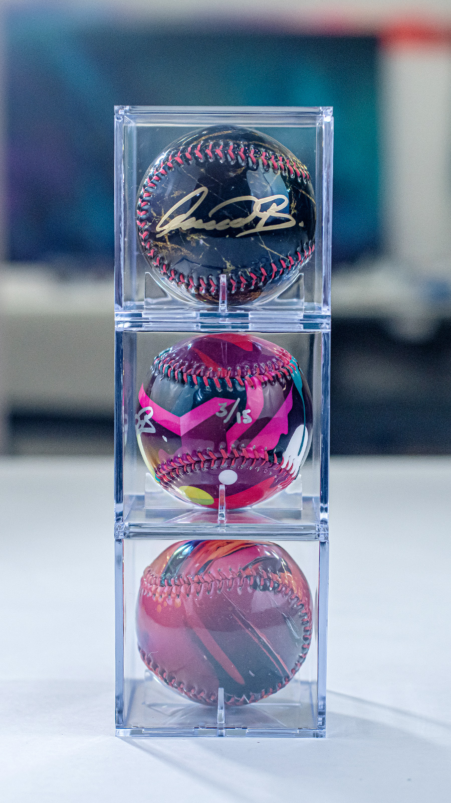- Samlet pakke på 3 custom baseballs