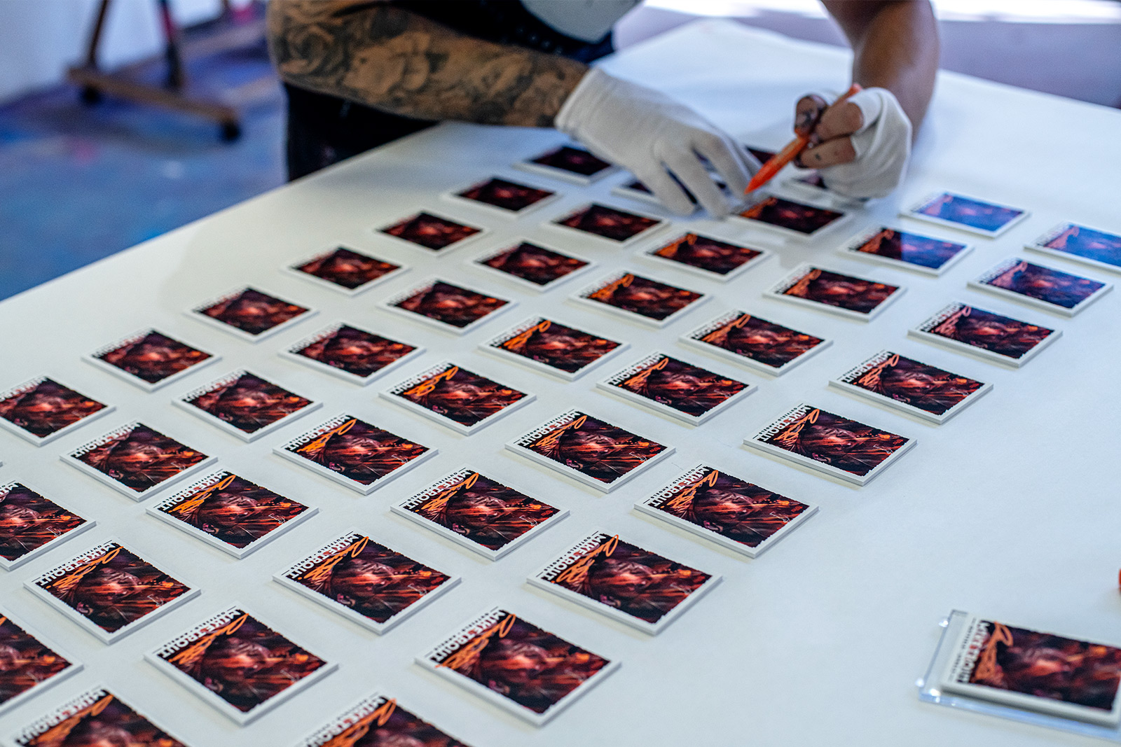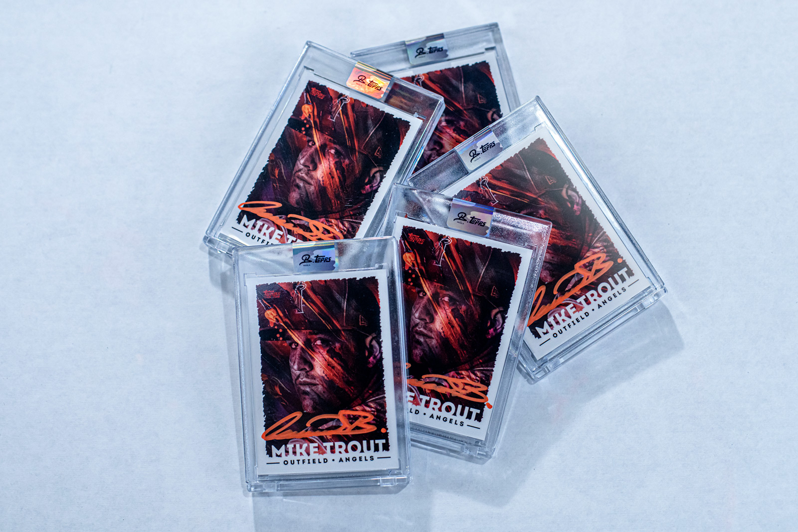 - Indkapslet i beskyttende plastiketui med Mikael B x Topps holografisk forsegling