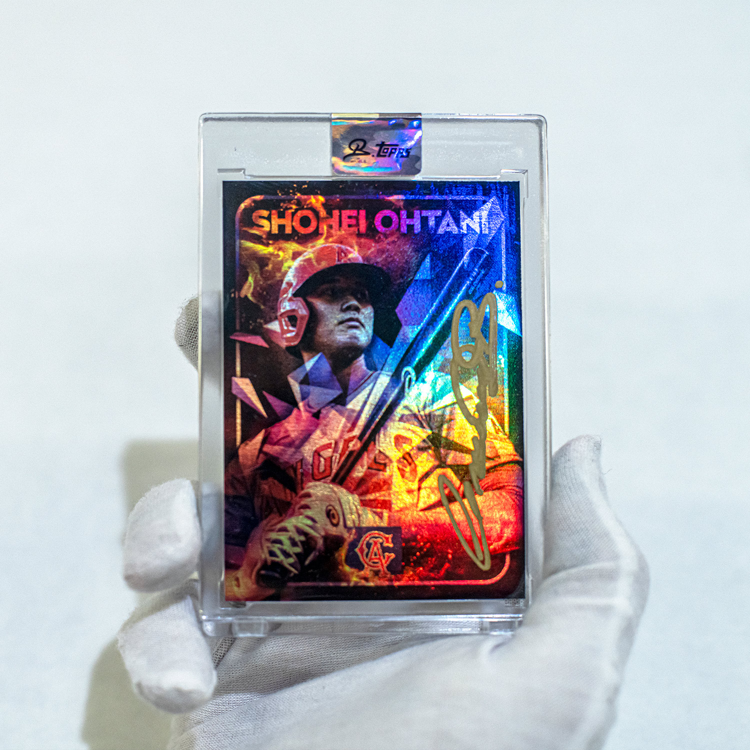 - Indkapslet i beskyttende plastiketui med Mikael B x Topps holografisk forsegling