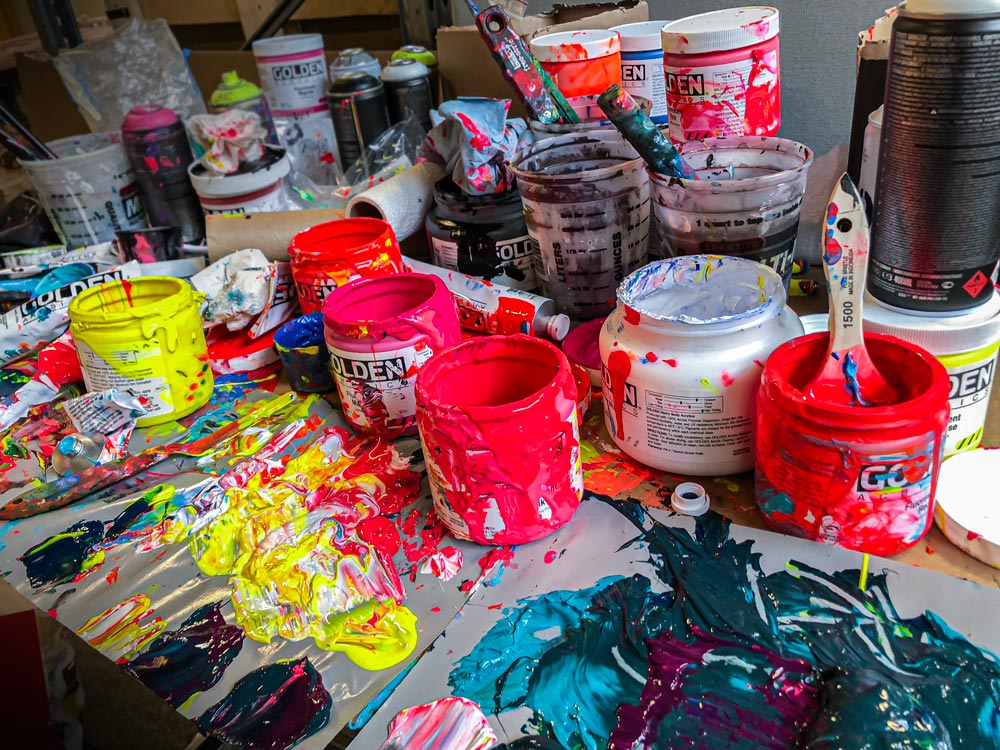 - Håndmalede detaljer med akryl og spray