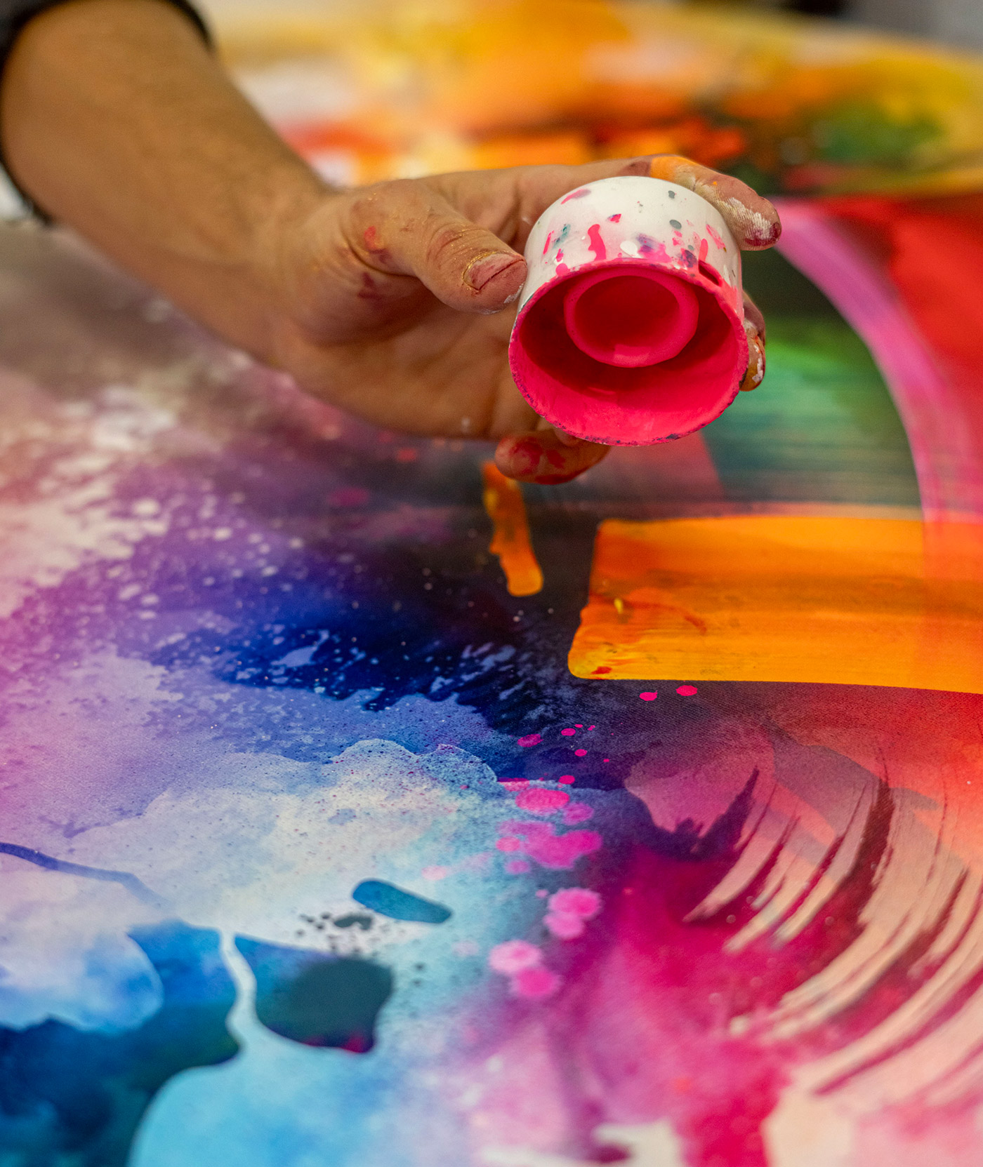 Unikke håndmalede detaljer med akryl og spray maling, udført af Mikael, gør hvert eksemplar unik.