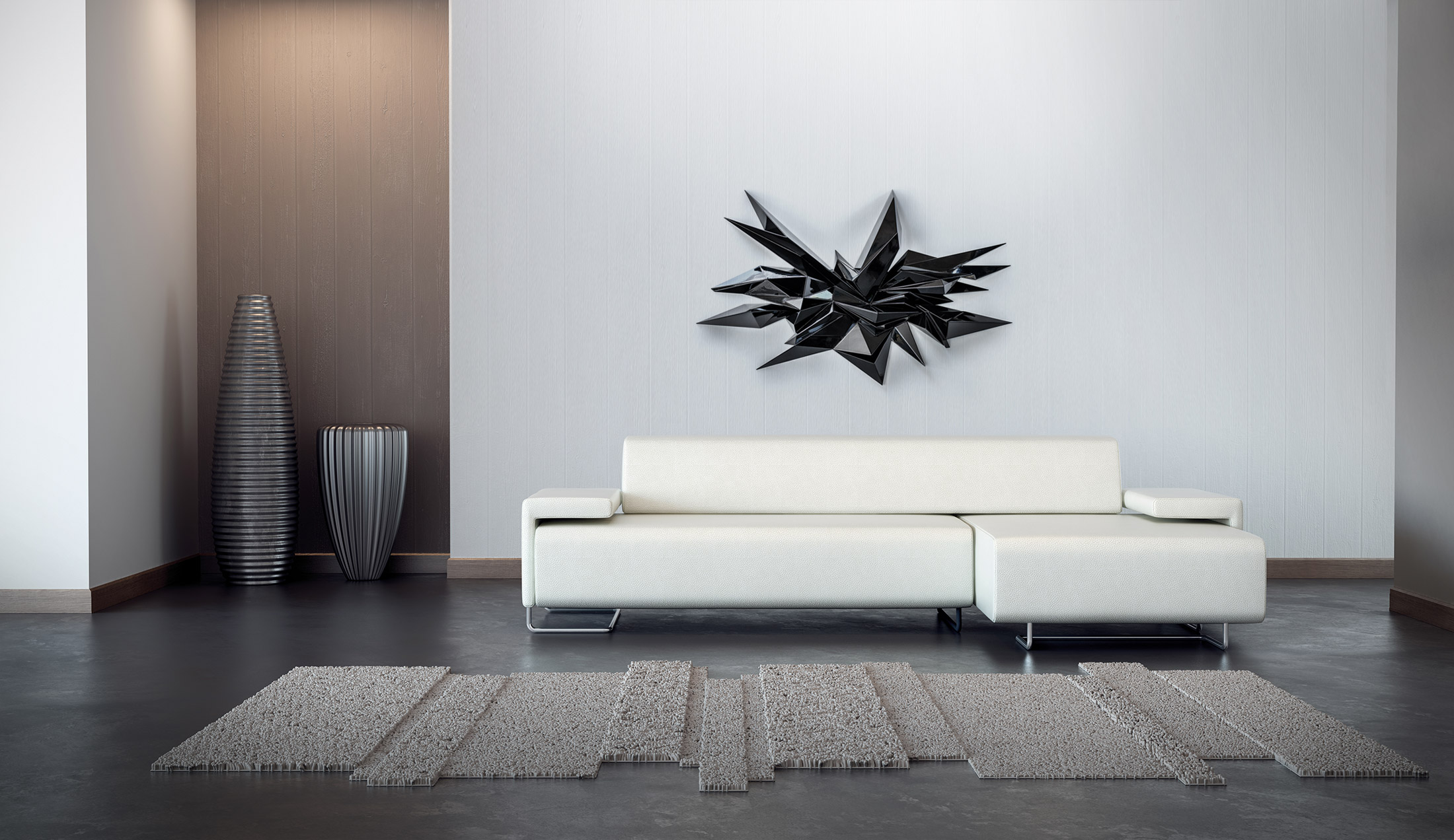 Skulpturen er monteret med en bagplade i varmebehandlet birkefinér, der fungerer som et robust vægbeslag. Kan monteres på væggen med blot to skruer.