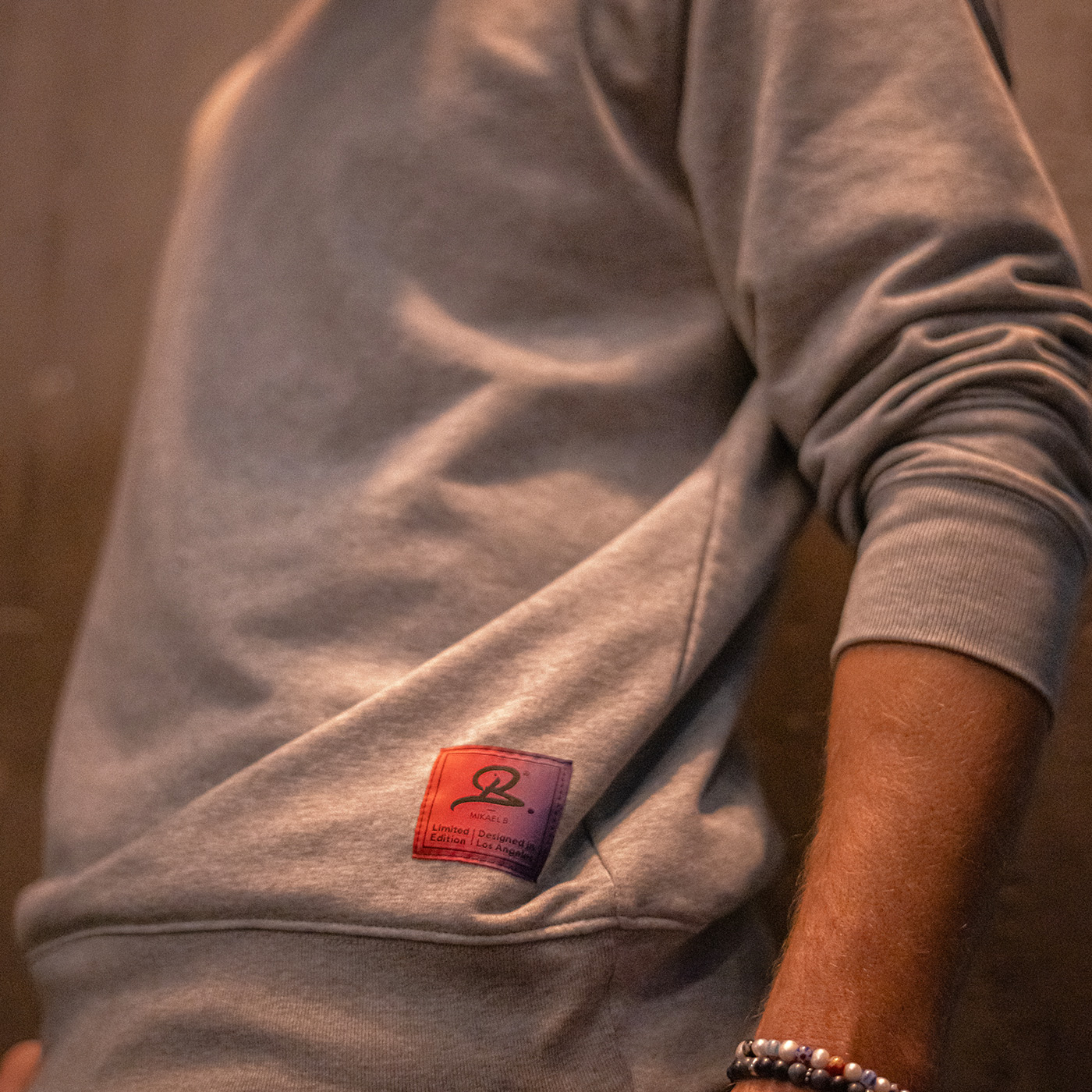 Specielt Mikael B. logo påsyet i bunden af trøjen.