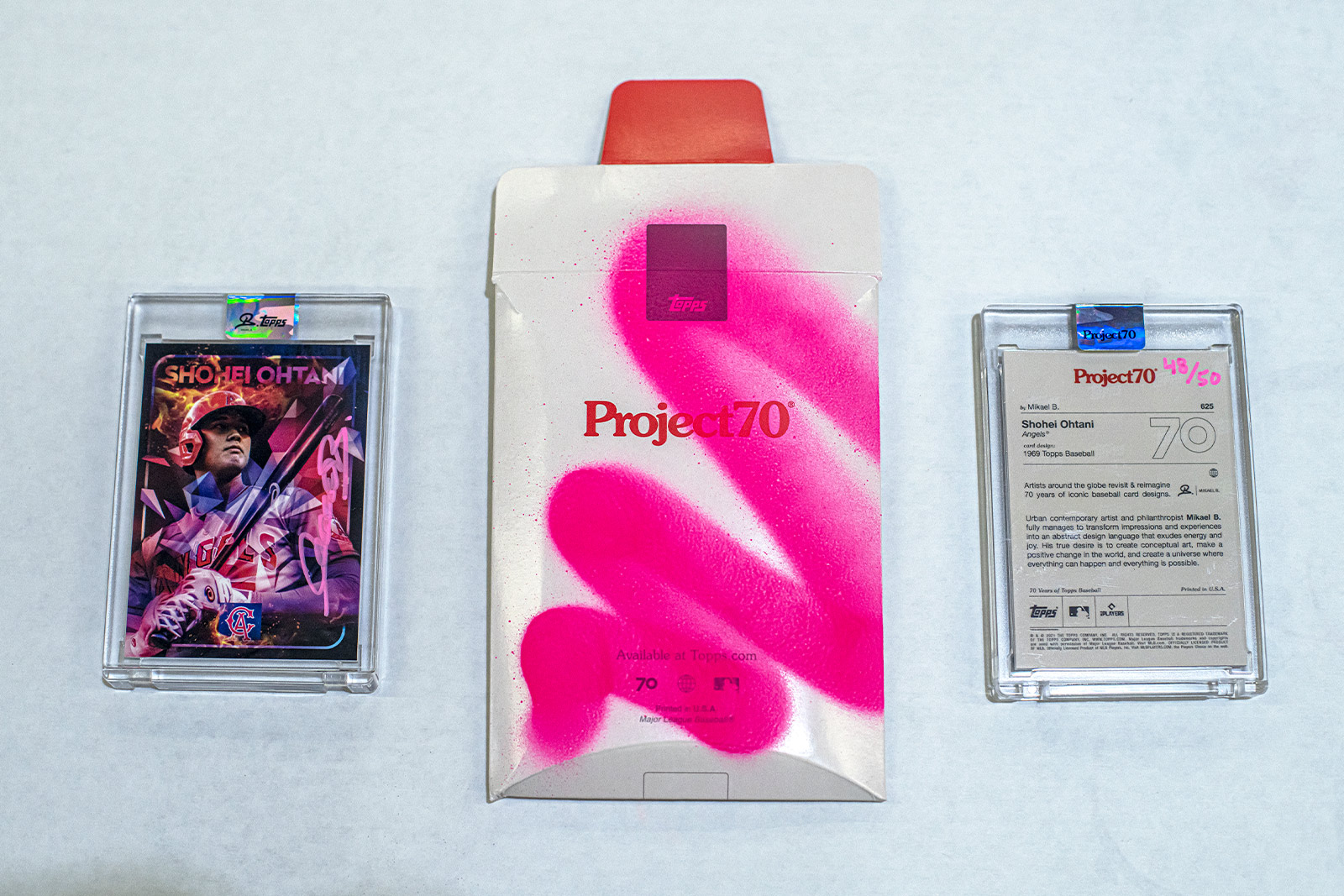 - Indkapslet i beskyttende plastiketui med Mikael B x Topps holografisk forsegling