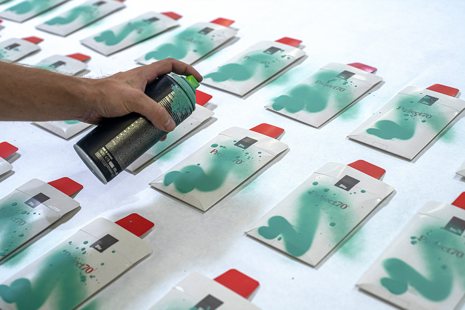 - Unik håndmalet Project70 kasse med fluorescerende spraymaling