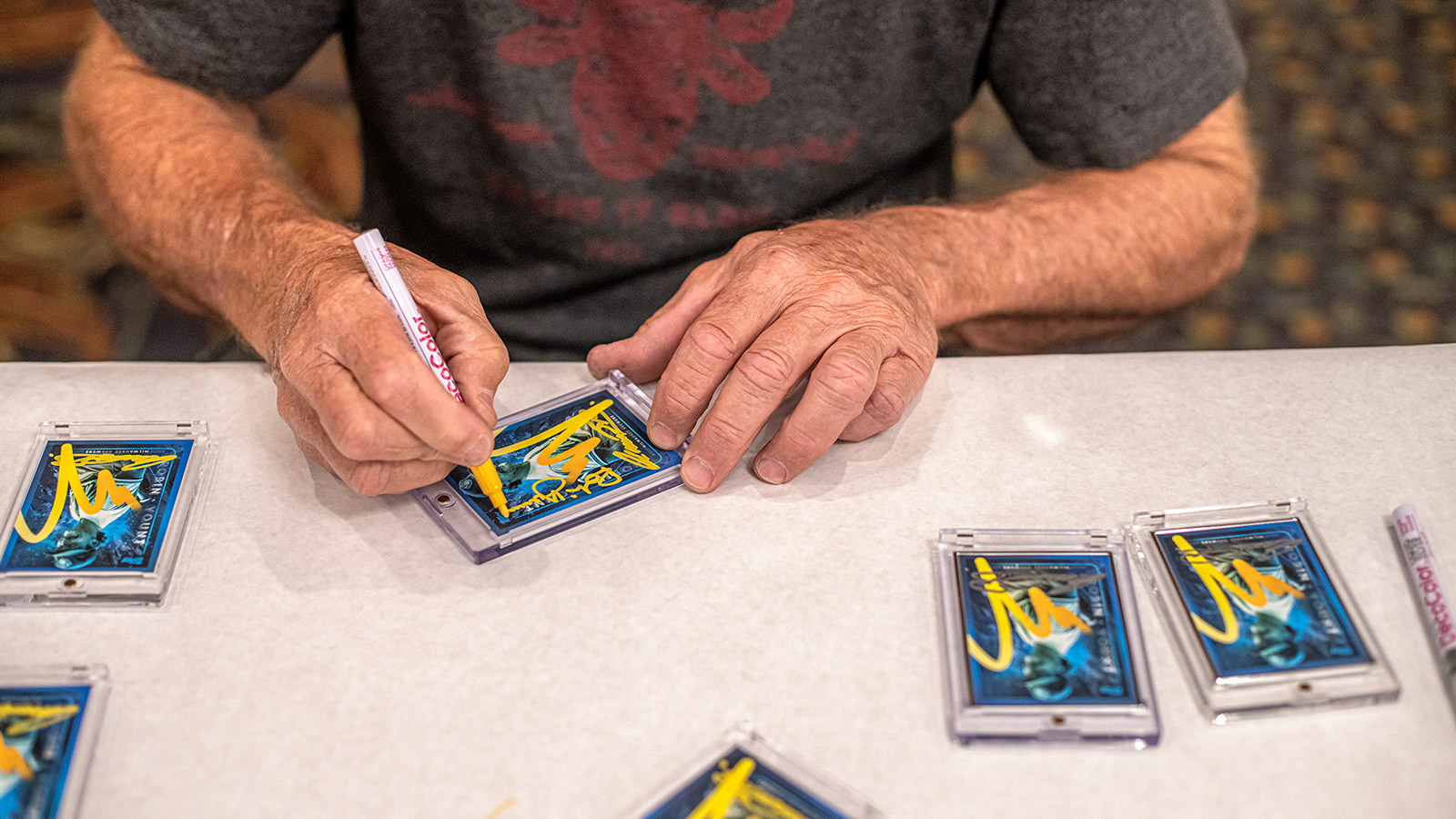 - Indkapslet i beskyttende plastiketui med Mikael B x Topps holografisk forsegling